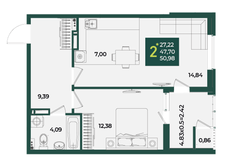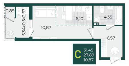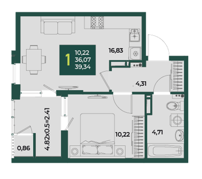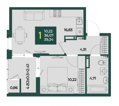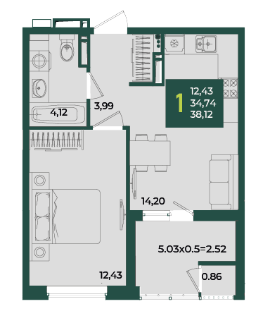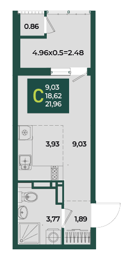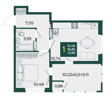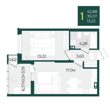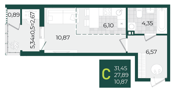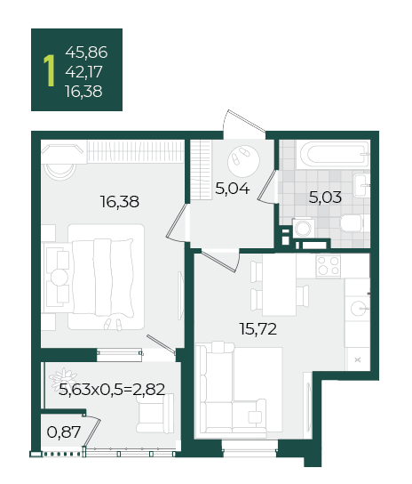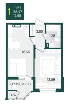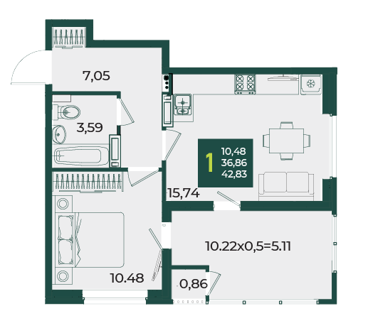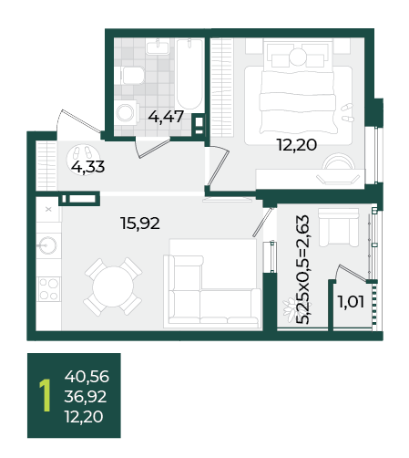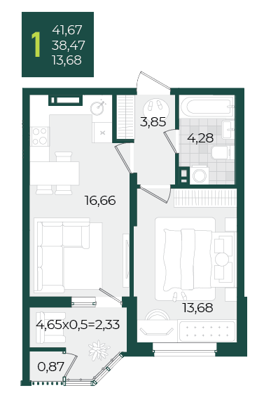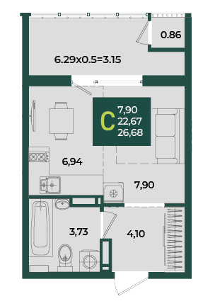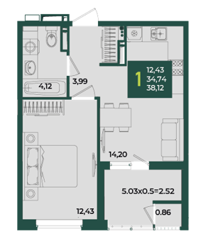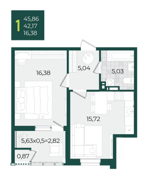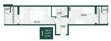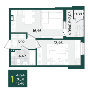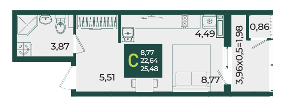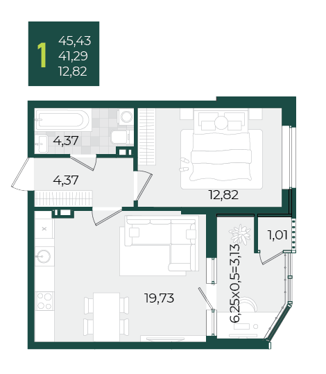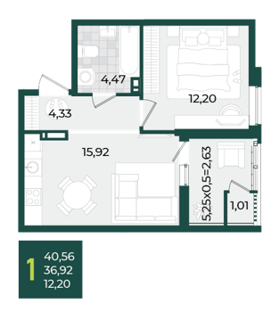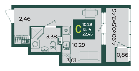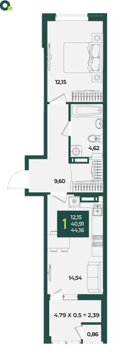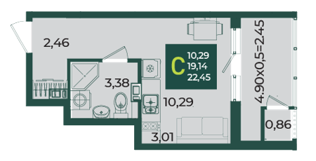 Рассрочка сдача I квартал 2026г 1 комната от 24.5 до 32.1 м2 от 6,7 до 7,4 млн. руб