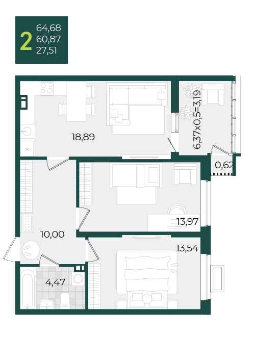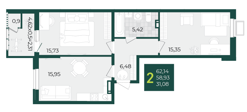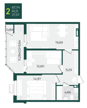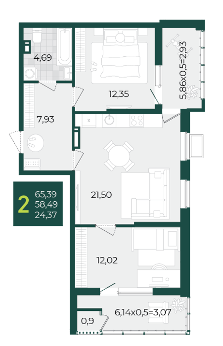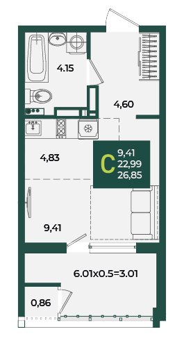 сдача IV квартал 2025г 1, 2, 3 комнаты от 22.4 до 89.8 м2 от 6,9 до 26,8 млн. руб