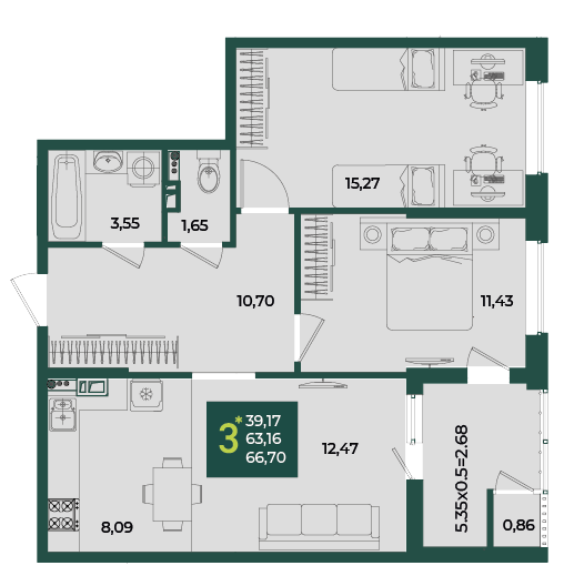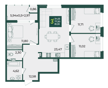 сдача III квартал 2025г 1, 2, 3, 4 комнаты от 35.3 до 235 м2 от 10,6 до 73,6 млн. руб