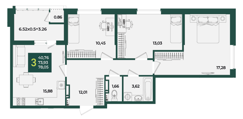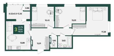 Рассрочка сдача I квартал 2026г 1, 2, 3, 5 комнат от 39.7 до 194.1 м2 от 7,6 до 27,8 млн. руб