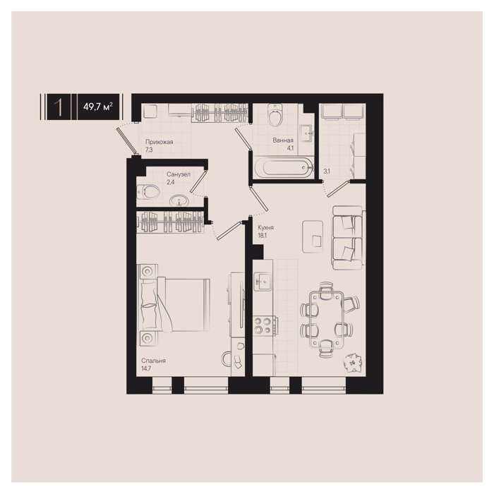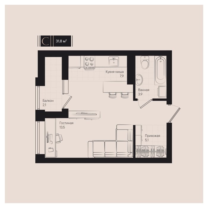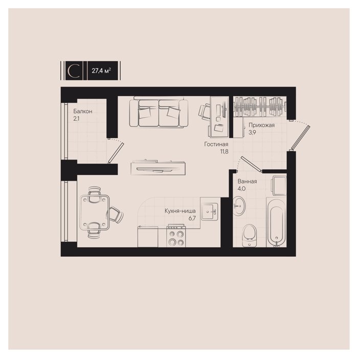 Рассрочка сдача I квартал 2026г 1 комната от 24.5 до 32.1 м2 от 6,7 до 7,4 млн. руб