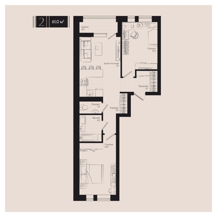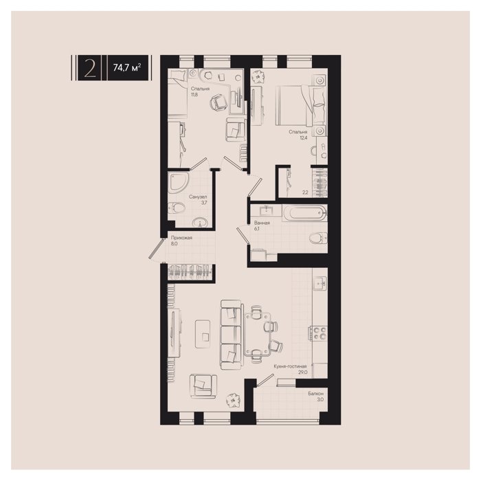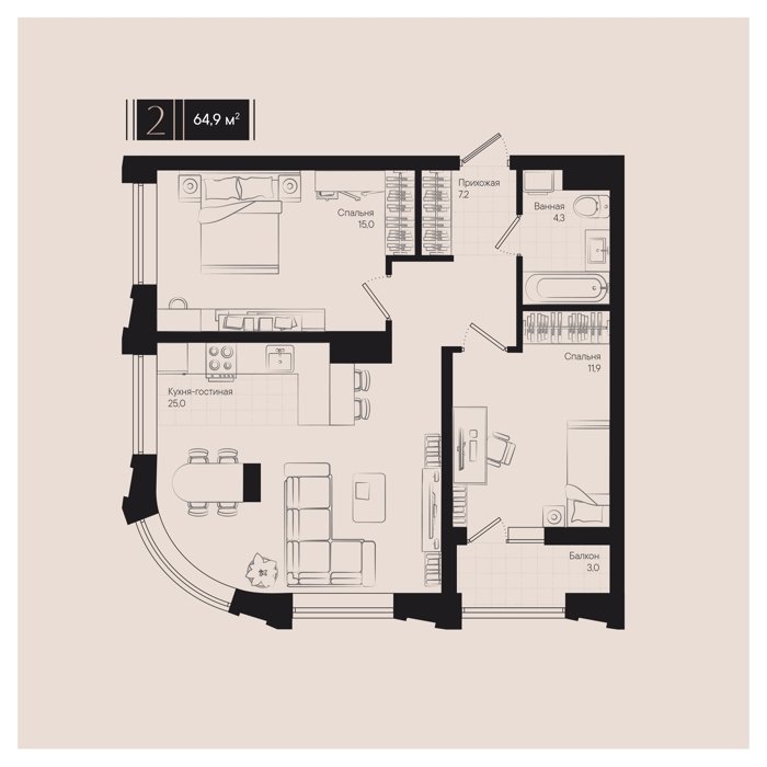 Рассрочка сдача IV квартал 2025г 1, 2, 3, 5 комнат от 24.7 до 98.1 м2 от 6,0 до 25,4 млн. руб