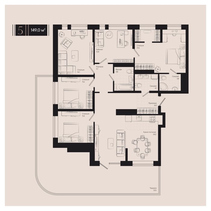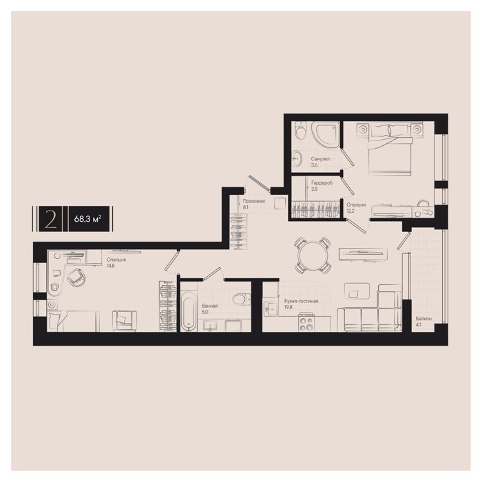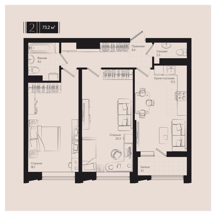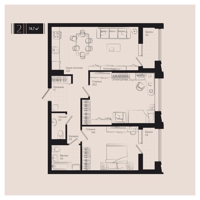 Рассрочка сдача I квартал 2026г 1, 2, 3, 5 комнат от 39.7 до 194.1 м2 от 7,6 до 27,8 млн. руб