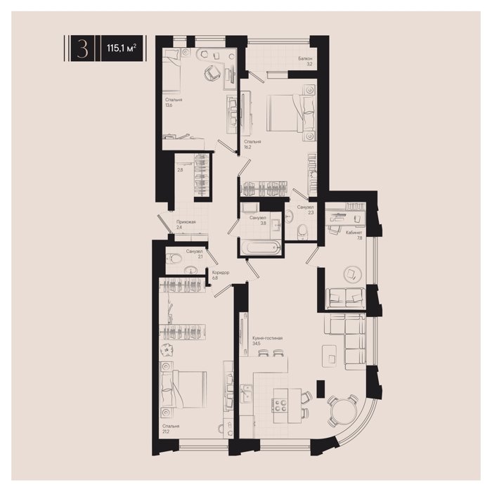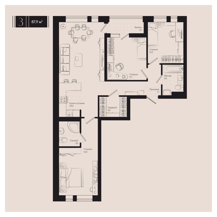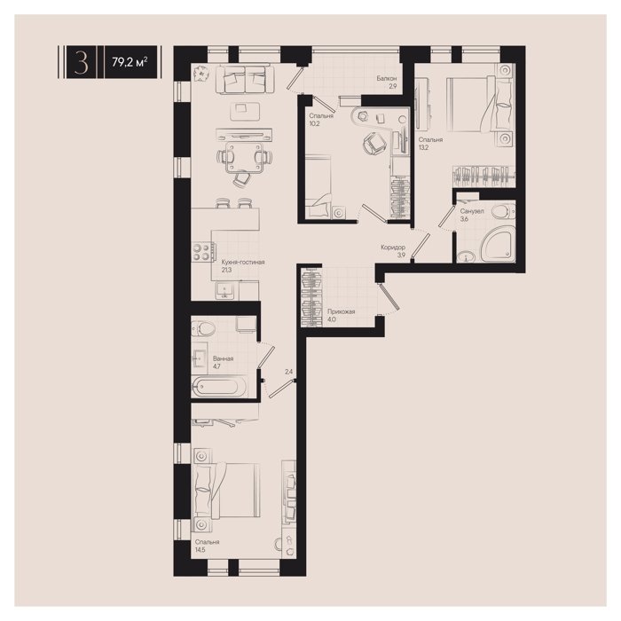 сдача III квартал 2025г 1, 2, 3, 4 комнаты от 35.3 до 235 м2 от 10,6 до 73,6 млн. руб