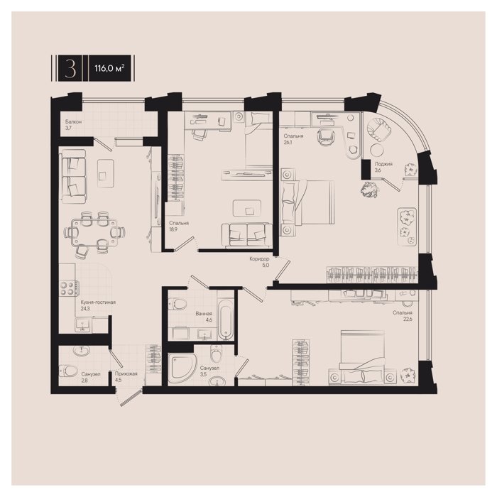 Рассрочка сдача III квартал 2026г 1, 2, 3 комнаты от 22 до 81.3 м2 от 4,5 до 11,5 млн. руб