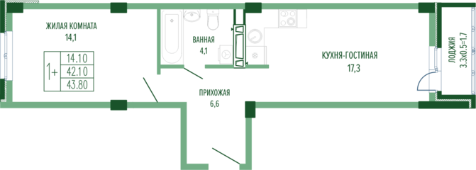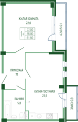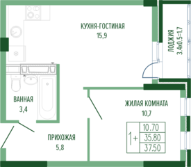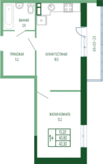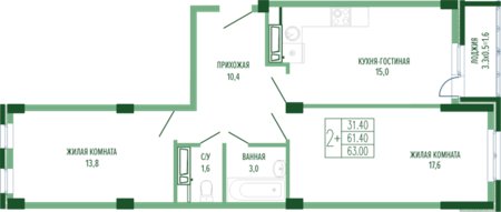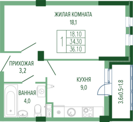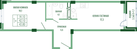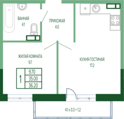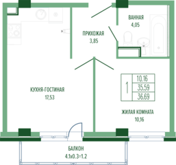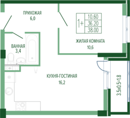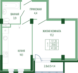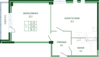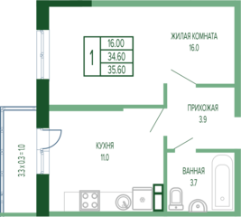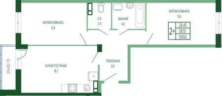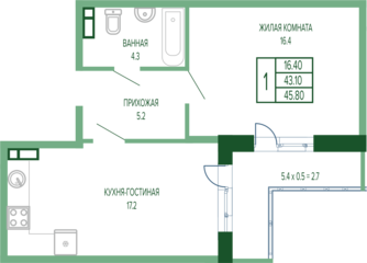 Рассрочка сдача I квартал 2026г 1 комната от 24.5 до 32.1 м2 от 6,7 до 7,4 млн. руб