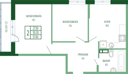 Рассрочка сдача I квартал 2026г 1, 2, 3, 5 комнат от 39.7 до 194.1 м2 от 7,6 до 27,8 млн. руб