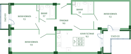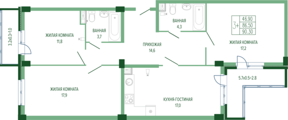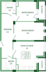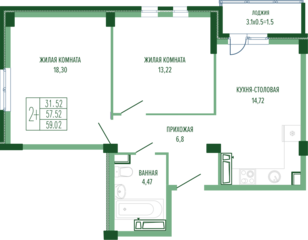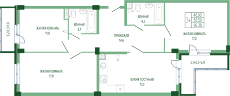 сдача IV квартал 2025г 1, 2, 3 комнаты от 22.4 до 89.8 м2 от 6,9 до 26,8 млн. руб