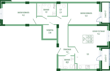 Рассрочка сдача III квартал 2026г 1, 2, 3 комнаты от 22 до 81.3 м2 от 4,5 до 11,5 млн. руб